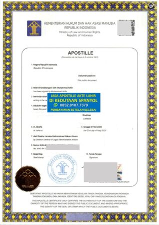 Untuk Informasi Biaya Jasa Apostille Akte Lahir di Kemenkumham untuk dibawa Spanyol Silakan Hubungi Kami:
