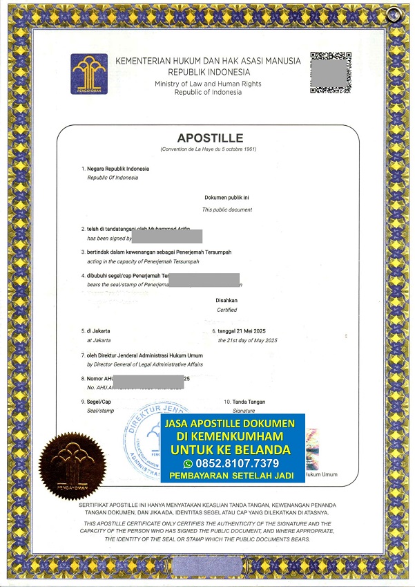 Untuk Informasi Biaya Jasa Apostille di Kemenkumham untuk dibawa Belanda Silakan Hubungi Kami: