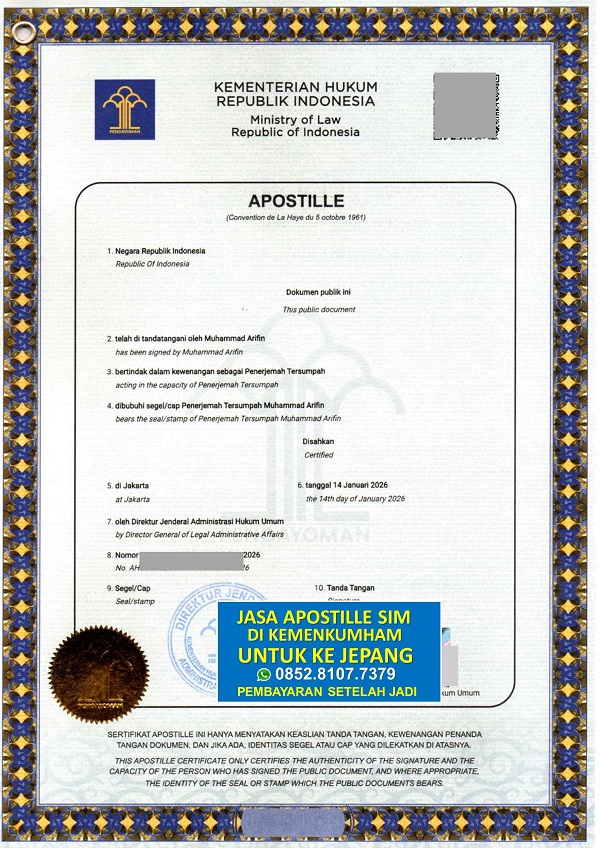 Untuk Informasi Biaya Jasa Apostille SIM di Kemenkumham untuk dibawa Jepang Silakan Hubungi Kami:
