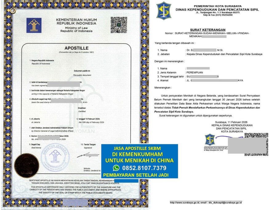 Untuk Informasi Biaya Jasa Apostille SKBM di Kemenkumham untuk menikah di China Silakan Hubungi Kami: