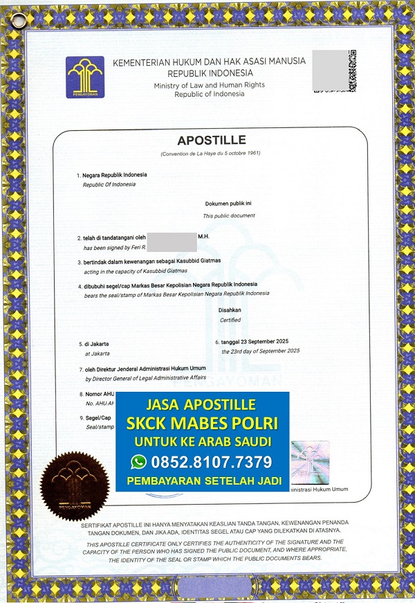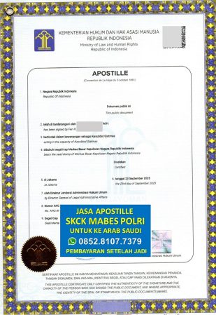 Untuk Informasi Biaya Jasa Apostille SKCK di Kemenkumham untuk dibawa ke Arab Saudi Silakan Hubungi Kami: