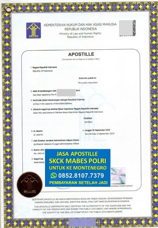 Untuk Informasi Biaya Jasa Apostille SKCK di Kemenkumham untuk dibawa ke Montenegro Silakan Hubungi Kami: