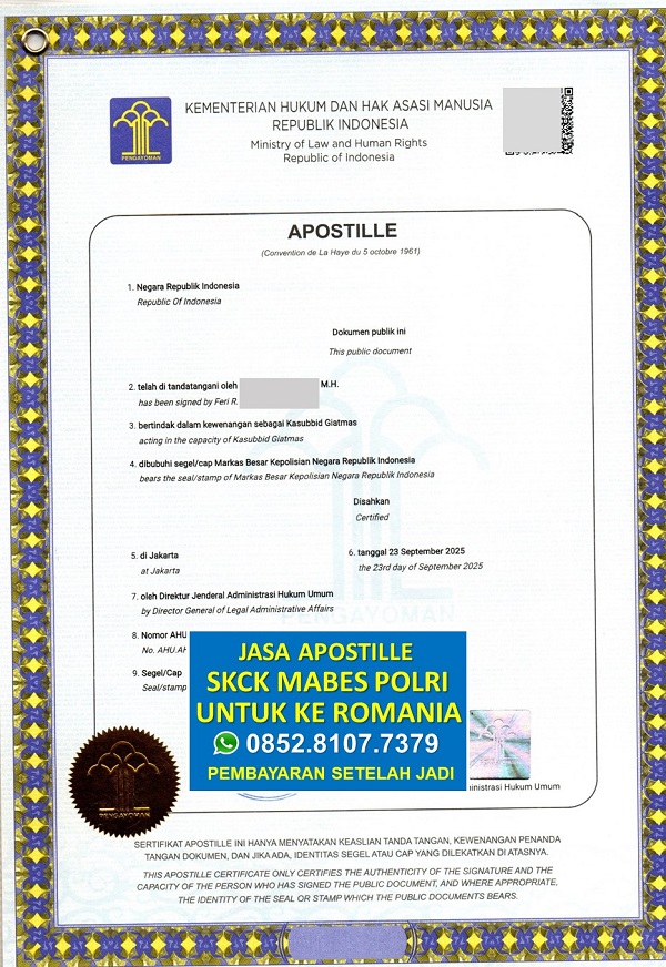 Untuk Informasi Biaya Jasa Apostille SKCK di Kemenkumham untuk dibawa ke Romania Silakan Hubungi Kami: