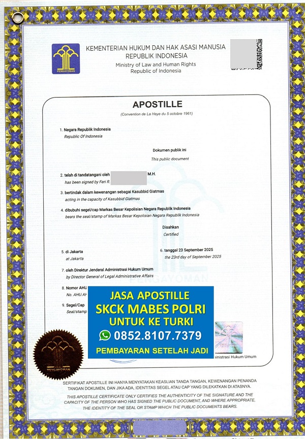 Untuk Informasi Biaya Jasa Apostille SKCK di Kemenkumham untuk dibawa ke Turki Silakan Hubungi Kami:
